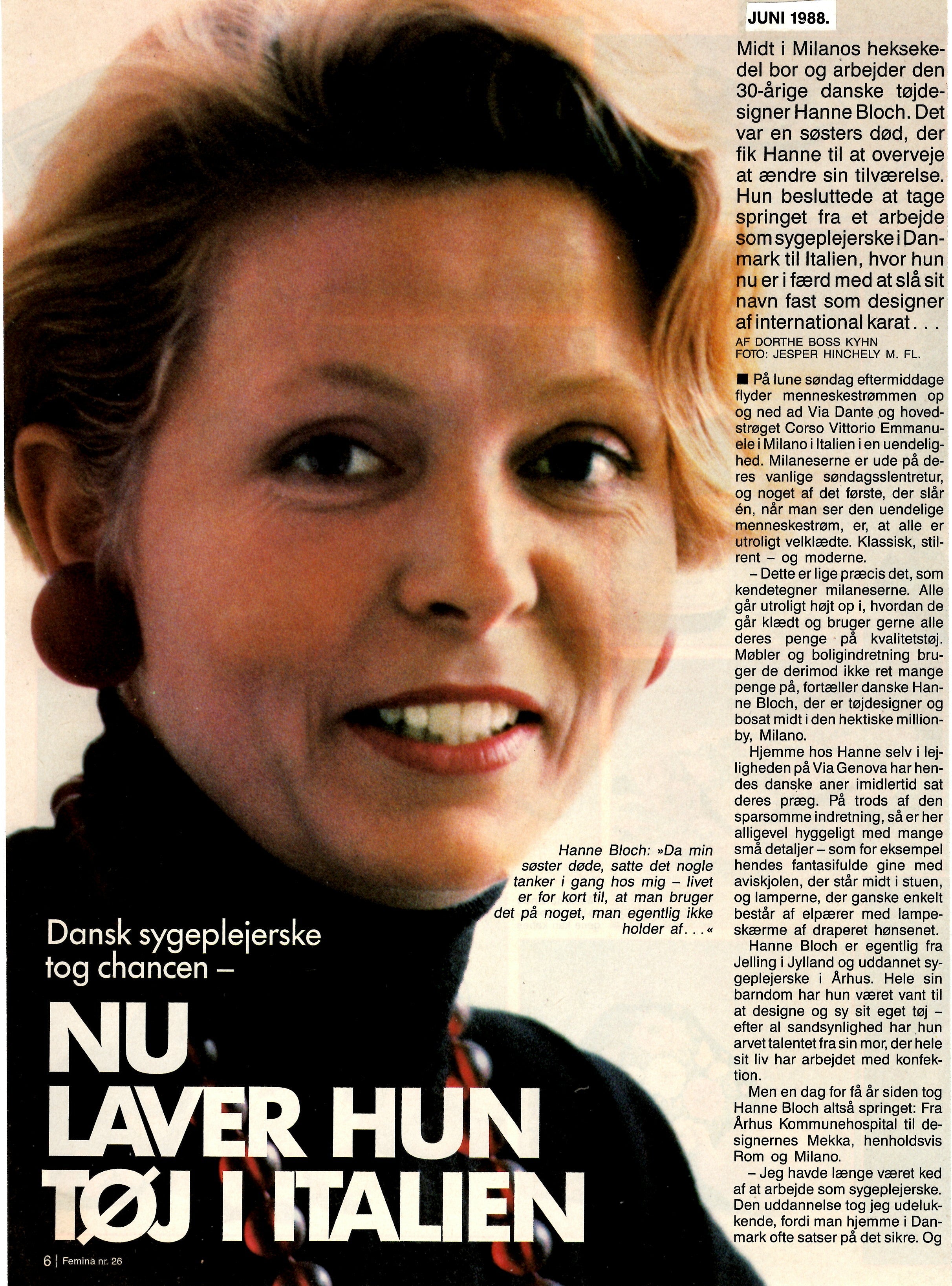 With no other qualifications than strong sewing skills, Hanne Bloch was accepted to one of the exclusive design schools in Rome. One day, five years later, she is in one of the most sought-after jobs: as a designer at the great fashion house Missoni in Milan. The industry is cutthroat, and there is no room for failures, but she doesn't regret the leap she took.