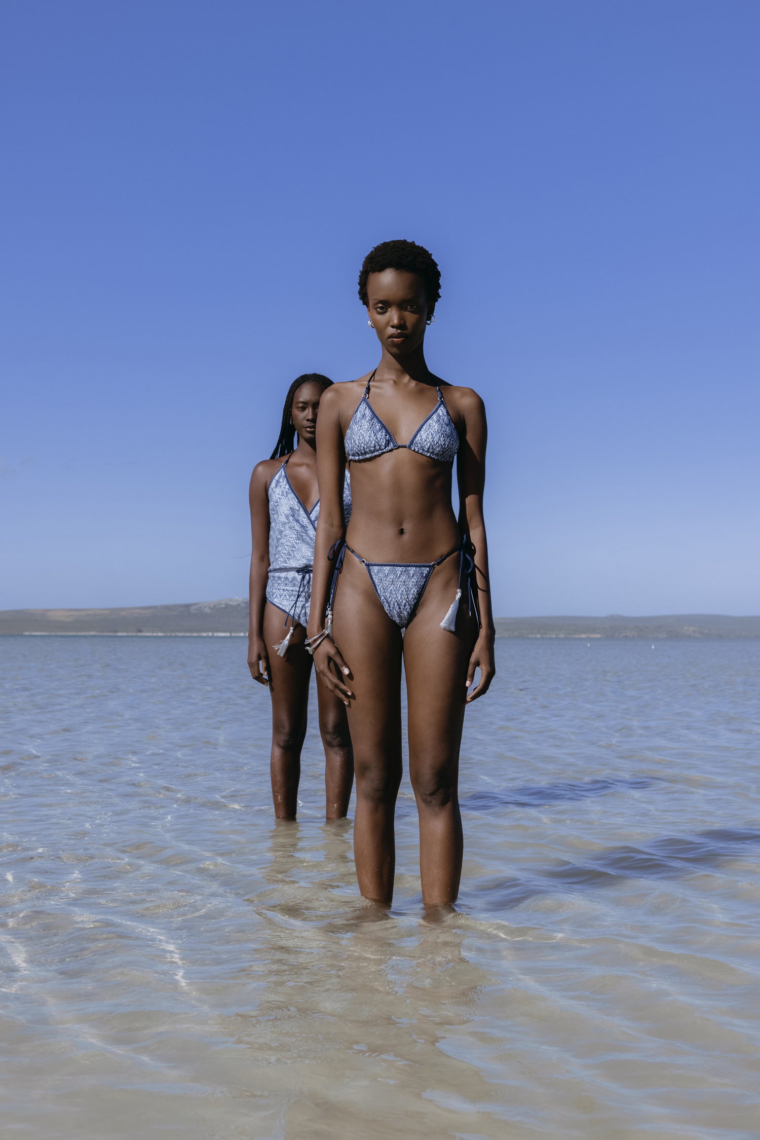 Triangle bikini in Ocean Knit, custom-made in Italy, with real silver-plated details. Light support with removable padding, made for sun, sea, and swim. Pair with our Ocean Knit Kaftan or Scarf Top for the perfect match.
